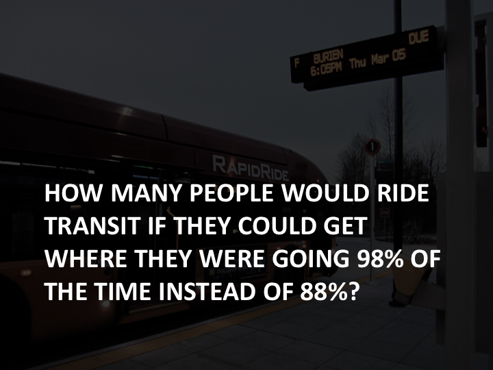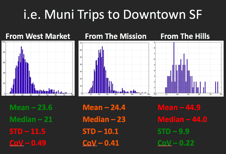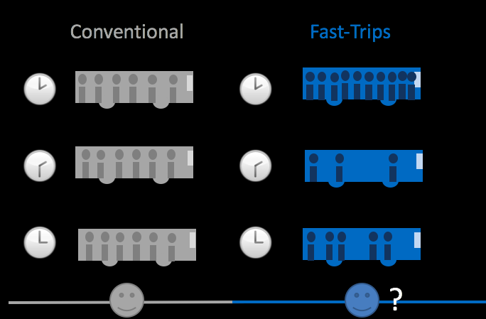 Similarly, Fast-Trips can show that individual riders may have different experiences on the same vehicle. If you are the person who got a seat, you will feel very differently about your trip than the person who got passed-up or is squished near the door.