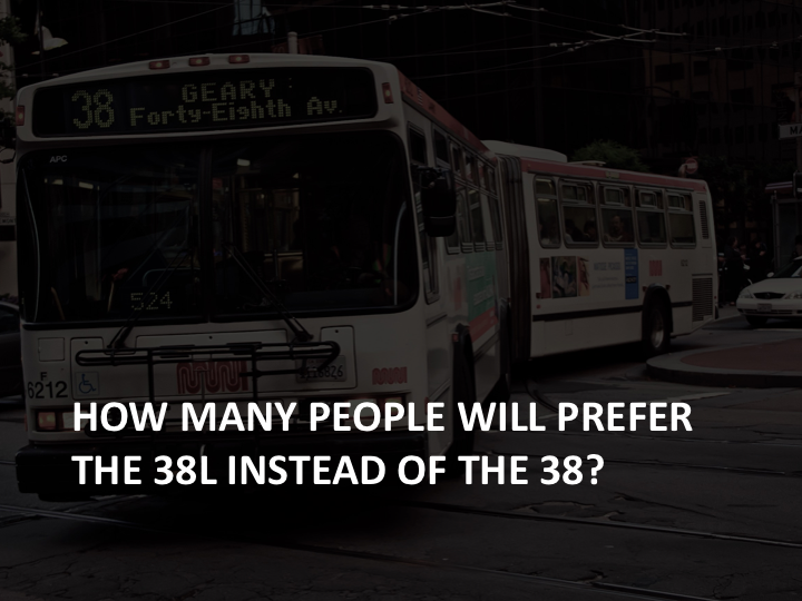 Fast-trips tracks individual transit vehicles and people as they move through space and time. The overflowing 38L bus that arrives at Masonic Blvd. at 8:32 AM is represented separately from the bus that arrives at 8:35 AM and has free seats.