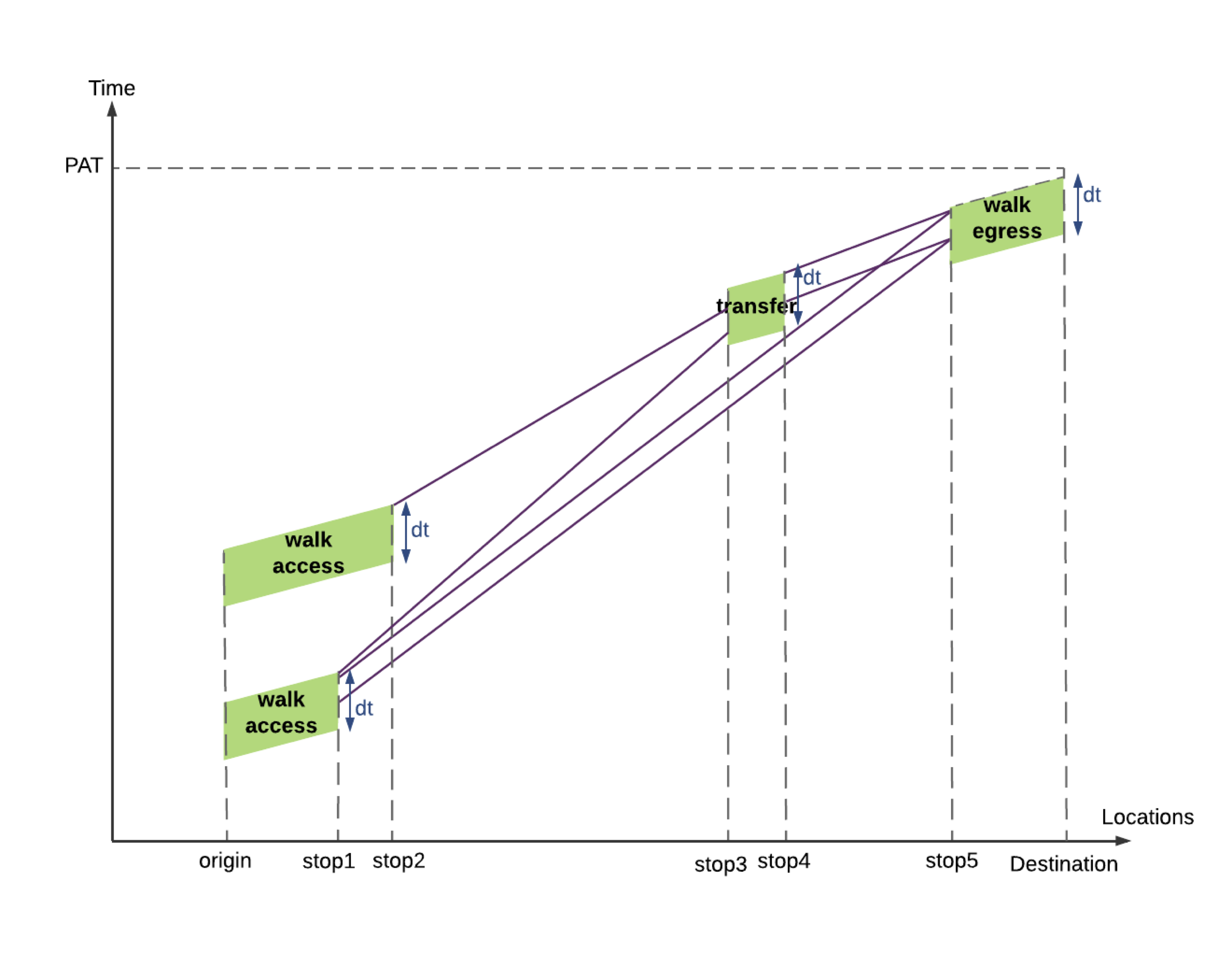 - Pa is the set of available links (transit vehicle trips or transfers from stop i)